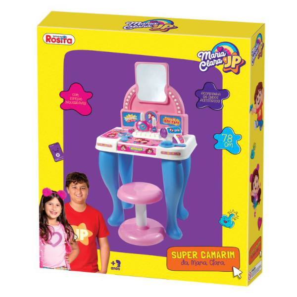 Prepare-se para se sentir como uma verdadeira estrela com o Super Camarim da Maria Clara, da famosa dupla de Youtubers Maria Clara&JP! Este incrível conjunto inclui um camarim em plástico resistente, um banquinho confortável, um espelho inquebrável e seis acessórios de beleza para brincar de faz-de-conta. Com uma altura de 78 cm, este camarim é perfeito para crianças a partir de 3 anos de idade. Deixe a imaginação voar enquanto cria looks incríveis e se diverte com este conjunto cheio de estilo! |