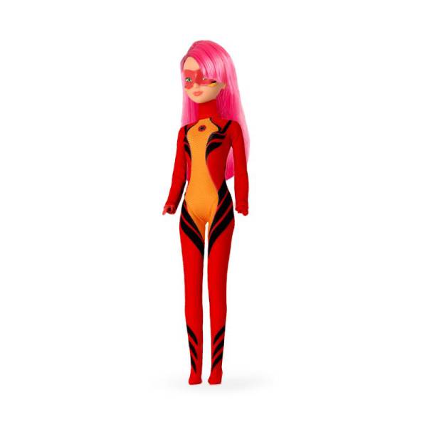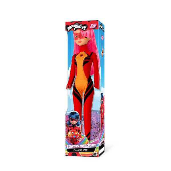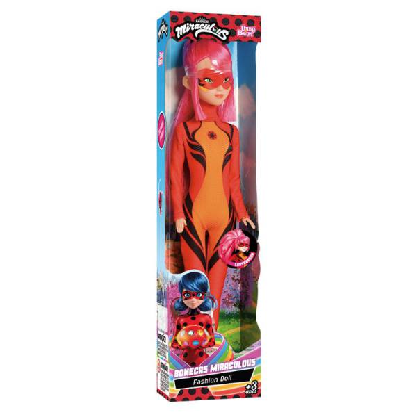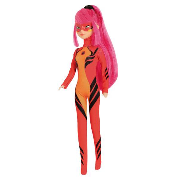 Boneca em vinil da persogem Lady Dragon de Miraculous Aventuras de Ladybug, versão Fashion Doll, roupa em tecido 100% poliester, cabelos enraizados, máscara na face pintada, pernas, braços e cabeça articulados, altura 30 cm, sem mecanismo, idade recomendada 3+.