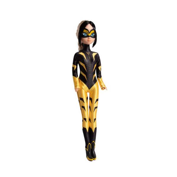 Boneca em vinil da persogem Vesperia de Miraculous Aventuras de Ladybug, versão Fashion Doll, roupa em tecido 100% poliester, cabelos enraizados, máscara na face pintada, pernas, braços e cabeça articulados, altura 30 cm, sem mecanismo, idade recomendada 3+.