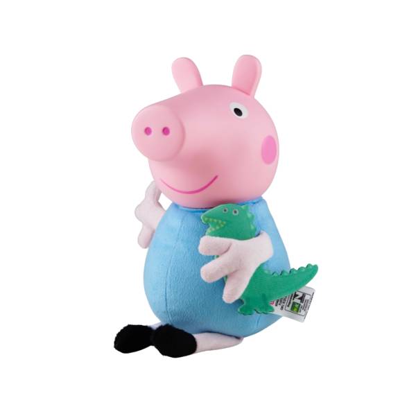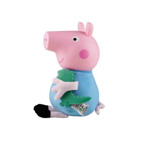 Personagen pré-escolar, George é irmão da Peppa Pig, os porquinhos mais amados pelas crianças, em versão boneco, corpinho e membros macios com enchimento 100% poliester, roupinha em tecido, cabeça em vinil, sem mecanismo, 32 cm de altura, acompanhado de seu brinquedo favorito Dinossauro (em tecido), embalagem em display aberta, idade recomendada 2 meses+,