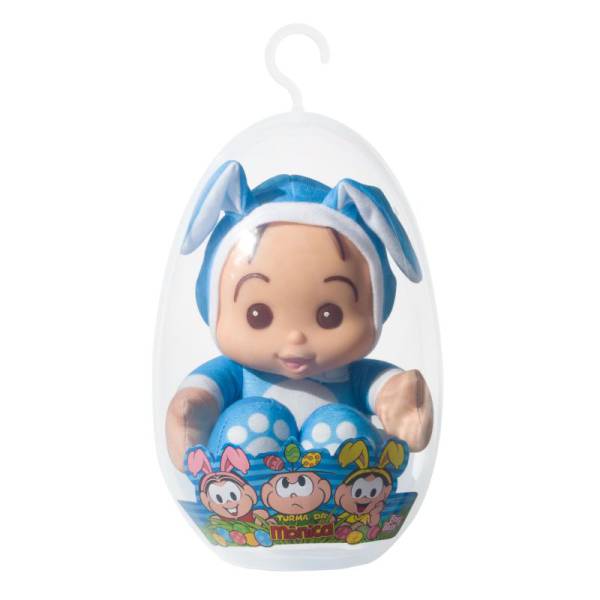 Boneco do personagem Cebolinha da Turma da Mônica, versão Coelhinho no Ovo de Páscoa, cabeça em vinil, corpo macio em tecido 100% poliéster e enchimento 100% poliéster reciclado, altura 24 cm, sem mecanismo, idade recomendada 2 meses+