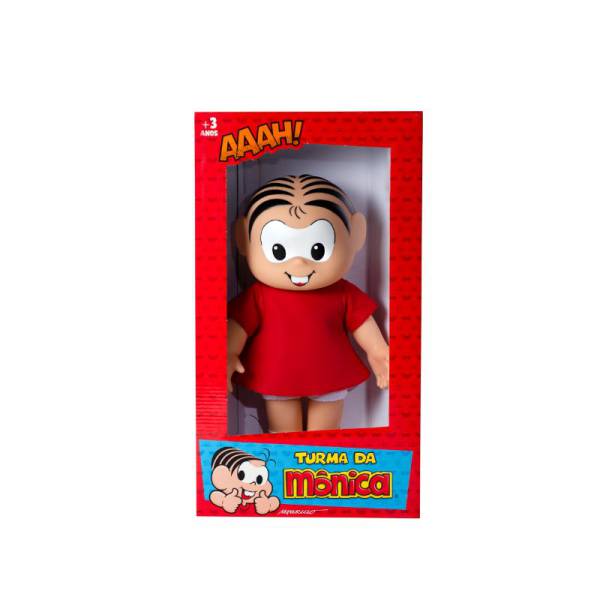 Boneca da Mônica, personagem da Turma da Mônica, boneco com corpinho macio em tecido e recheio de fibra 100% poliéster, cabeça, braços e pernas em vinil, sem mecanismo, roupinhas em tecido, 36 cm de altura, idade recomendada 3+