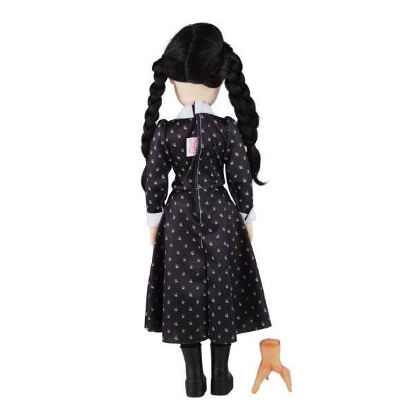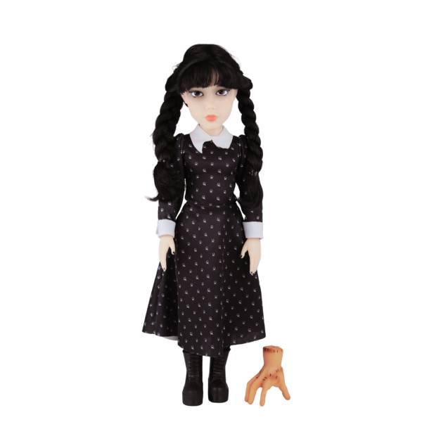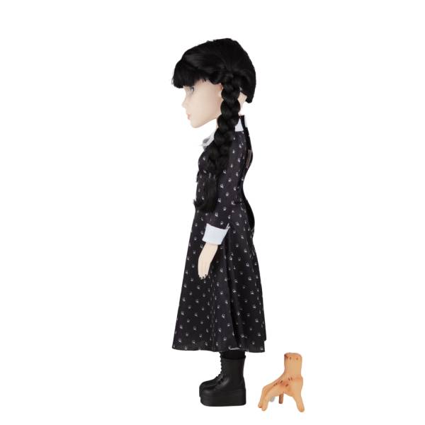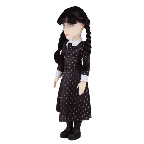 Inspirada na série de sucesso, esta boneca de 45 cm de altura traz toda a essência sombria e encantadora da Wandinha. Com cabelos enraizados e uma roupa confeccionada em tecido 100% poliéster, cada detalhe foi cuidadosamente elaborado para refletir a autenticidade da personagem.