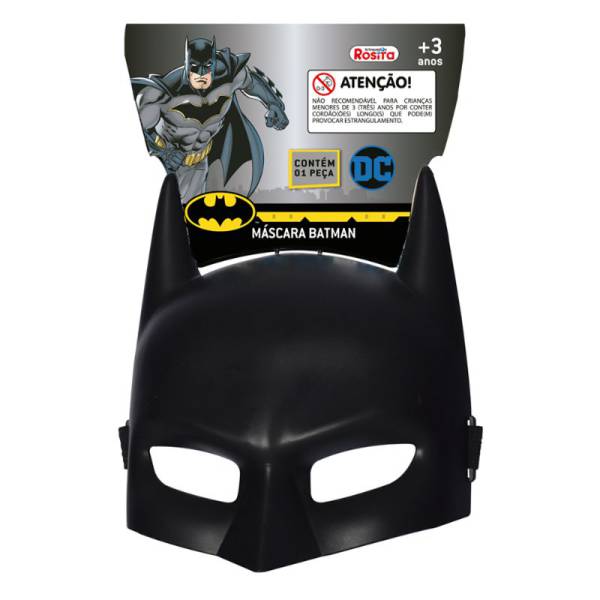 Máscara injetada do super-herói Batman da Warner DC, idade recomendada 3+