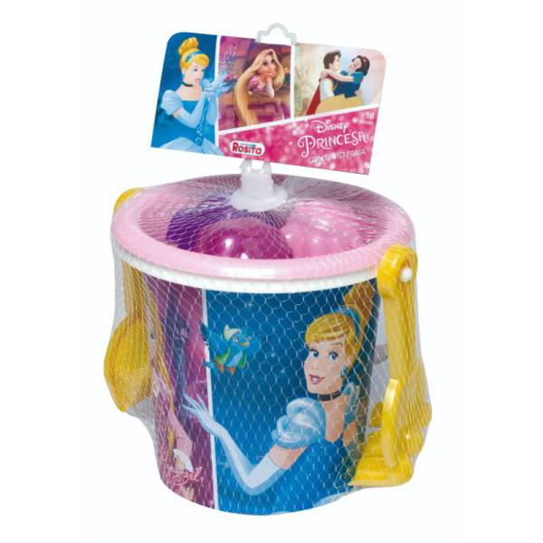 Injected beach set, consisting of baldinho, sieve, shovel, lovet and 3 sand formals, decorated with images of the characters Disney Princesses.