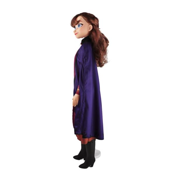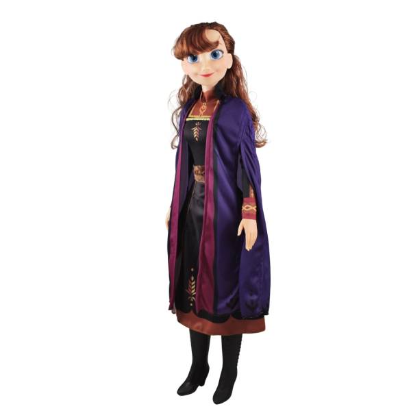Boneca da personagem Anna de Frozen II Disney, em vinil, versão My Size, cabelos enraizados, luxuosa roupa em tecido, braços, pernas e cabeça articulados, botas removíveis, sem mecanismo, altura 82 cm, idade recomendada 3+