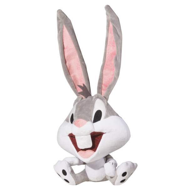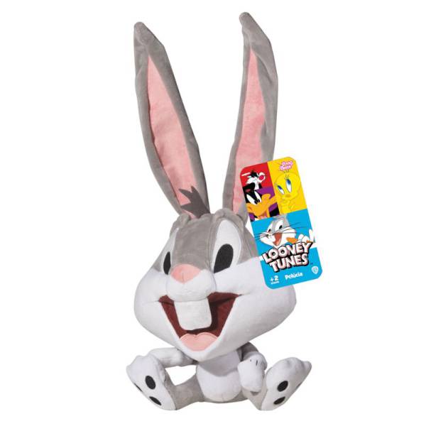 Pelúcia do personagem Pernalonga do clássico Looney Tunes, em pelúcia macia 100% poliéster, enchimento em fibra 100% poliéster reciclado, sem mecanismo, altura 40 cm, idade recomendada +2 meses.