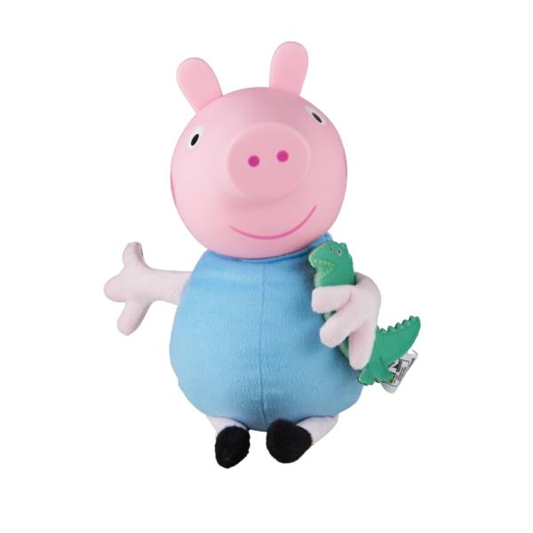 Personagen pré-escolar, George é irmão da Peppa Pig, os porquinhos mais amados pelas crianças, em versão boneco, corpinho e membros macios com enchimento 100% poliester, roupinha em tecido, cabeça em vinil, sem mecanismo, 32 cm de altura, acompanhado de seu brinquedo favorito Dinossauro (em tecido), embalagem em display aberta, idade recomendada 2 meses+,