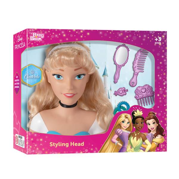 Bust to comb disney princess Cinderella, on vinyl, rooted hair, painted clothing, no mechanism, accompanies toy beauty accessories, height 24 cm, recommended age 3+.