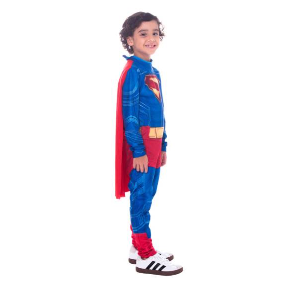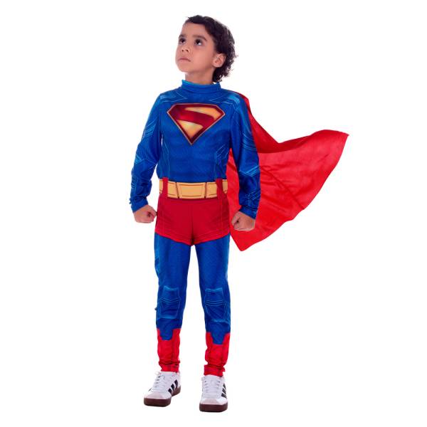Voe pelos céus como o Homem de Aço com a Fantasia Superman Filme Clássica! Com macacão longo e capa, essa fantasia é perfeita para crianças a partir de 3 anos que sonham em ter a força de Krypton. Disponível nos tamanhos P, M e G, o mundo precisa de um herói!