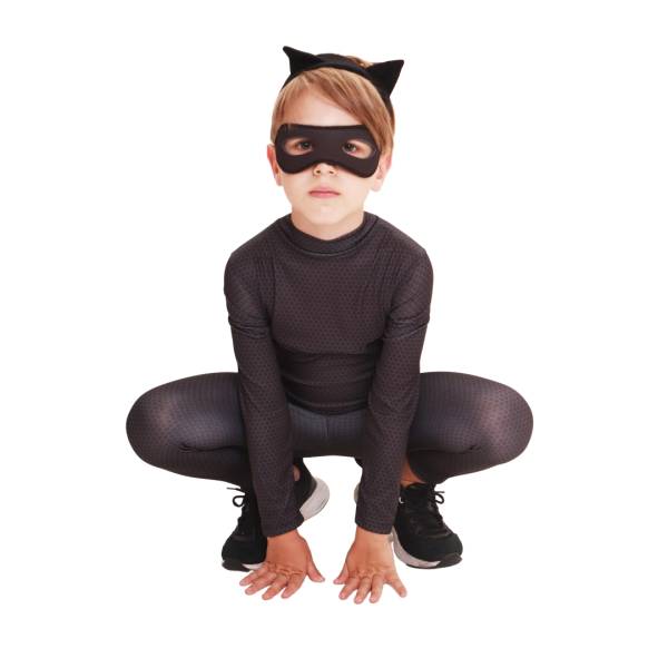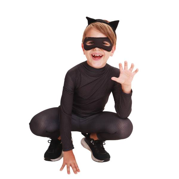 Fantasia do personagem Cat Noir, das Aventuras Miraculous Ladybug, versão luxo, macacão de pernas e mangas longas em tecido 100% poliéster, acompanha máscara em espuma anti chamas, disponível nos tamanhos P, M e G (3 a 5 anos, 6 a 8 anos e 9 a 12 anos recpectivamente).