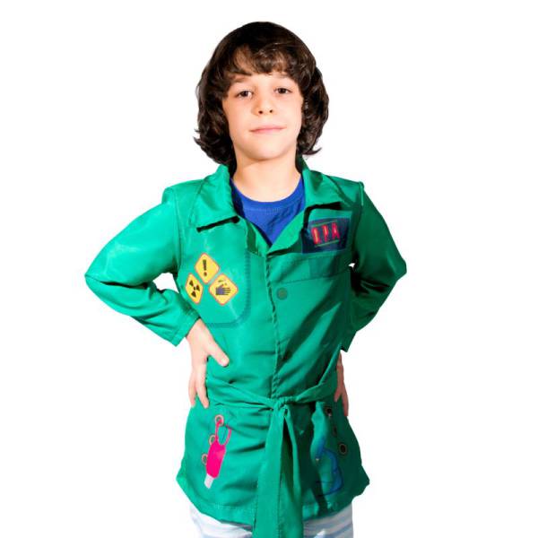 Fantasia/capa do personagem Zeca de Detetives do Prédio Azul, versão básica, em tecido 100% poliéster, disponível nos tamanhos P, M e G (3 a 5 anos, 6 a 8 anos e 9 a 12 anos recpectivamente).