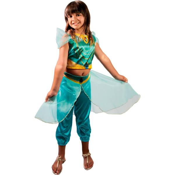fantasia da personagem Jasmine da Disney, na versão clássica , duas peças em luxuoso tecido 100% poliéster, disponível nos tamanhos P, M e G (3 a 5 anos, 6 a 8 anos e 9 a 12 anos recpectivamente).