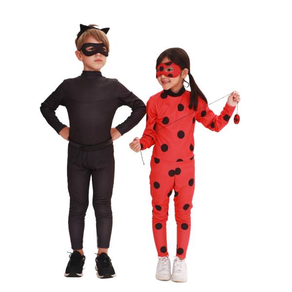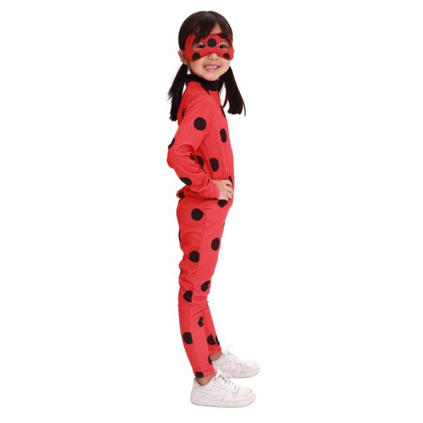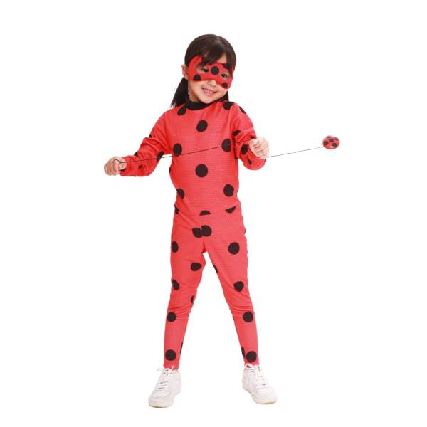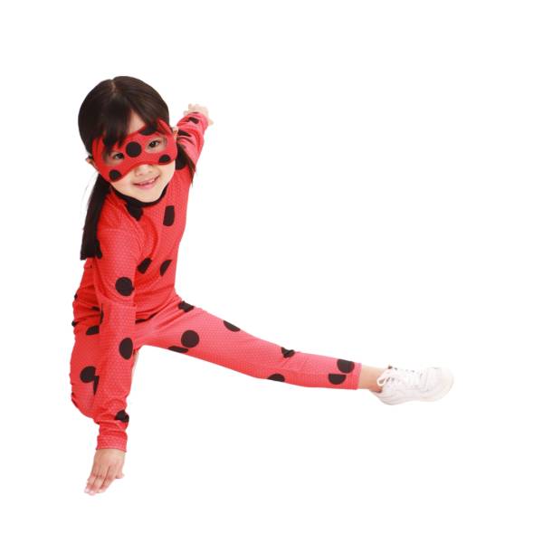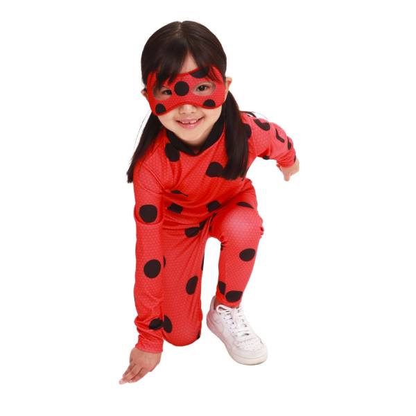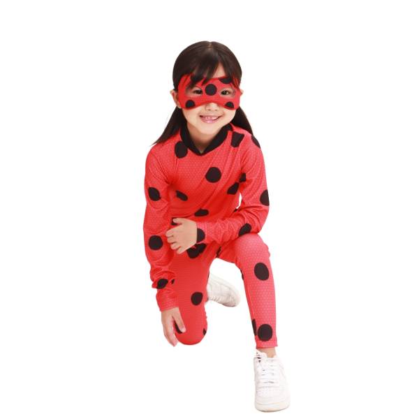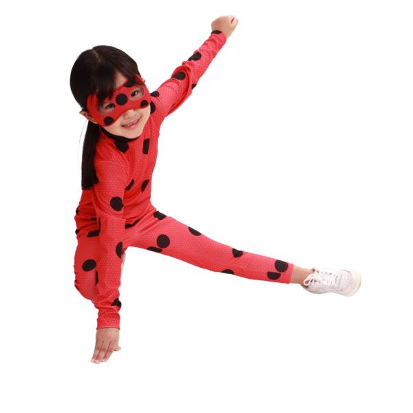 Fantasia da personagem Ladybug, das Aventuras Miraculous Ladybug, versão luxo, macacão de pernas e mangas longas em tecido 100% poliéster, acompanha máscara em EVA, disponível nos tamanhos P, M e G (3 a 5 anos, 6 a 8 anos e 9 a 12 anos recpectivamente).