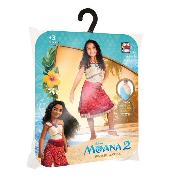 Em Moana 2 o tempo passou, ela cresceu, mas as aventuras continuam! E com o lançamento dessa tão aguardada sequência nos cinemas, a fantasia inspirada em Moana 2 recria o visual autêntico e vibrante dessa heroína! Composta por duas peças: saia e top, confeccionados em luxuoso tecido 100% poliéster, ainda acompanha um colar com o Coração Te Fiti, para a criança completar sua fantasia.